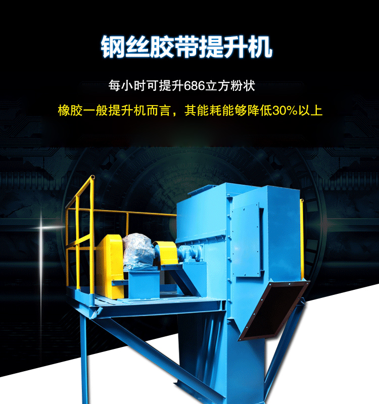 鋼絲膠帶斗式提升機(jī)固接著一系列料斗的牽引構(gòu)件(鋼芯繩芯橡膠帶)環(huán)繞在提升機(jī)的頭輪與底輪之間構(gòu)成閉合輪廓。驅(qū)動(dòng)裝置與頭輪相連,使斗式提升機(jī)獲得動(dòng)力并驅(qū)動(dòng)運(yùn)轉(zhuǎn)。張緊裝置與底輪相連,使?fàn)恳龢?gòu)件獲得必要的初張力,以保證正常運(yùn)轉(zhuǎn)。物料從提升機(jī)的底部供入,通過(guò)輪廓。驅(qū)動(dòng)裝置與頭輪相連,使斗式提升機(jī)獲得動(dòng)力并驅(qū)動(dòng)運(yùn)轉(zhuǎn)。張緊裝置與底輪相連,使?fàn)恳龢?gòu)件獲得必要的初張力,以保證正常運(yùn)轉(zhuǎn)。物料從提升機(jī)的底部供入,通過(guò)一系列料斗向上提升至頭部,并在該處實(shí)現(xiàn)卸載,從而實(shí)現(xiàn)在豎直方向內(nèi)運(yùn)送物料。